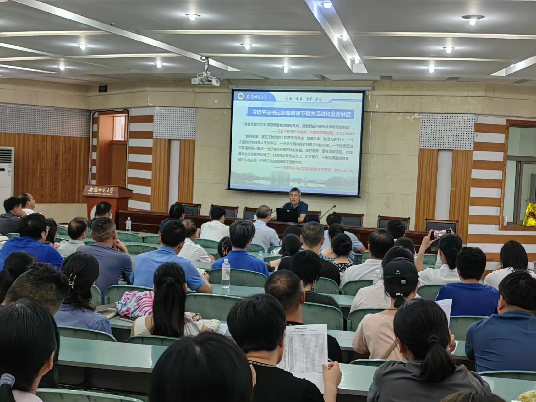 8月25日,437ccm必赢国际版举行师德师风教育专题政策宣讲会,校人事处副处长梁齐军应邀作专题报告,学院全体教职工参加学习教育,会议由学院党委书记黄德春主持。