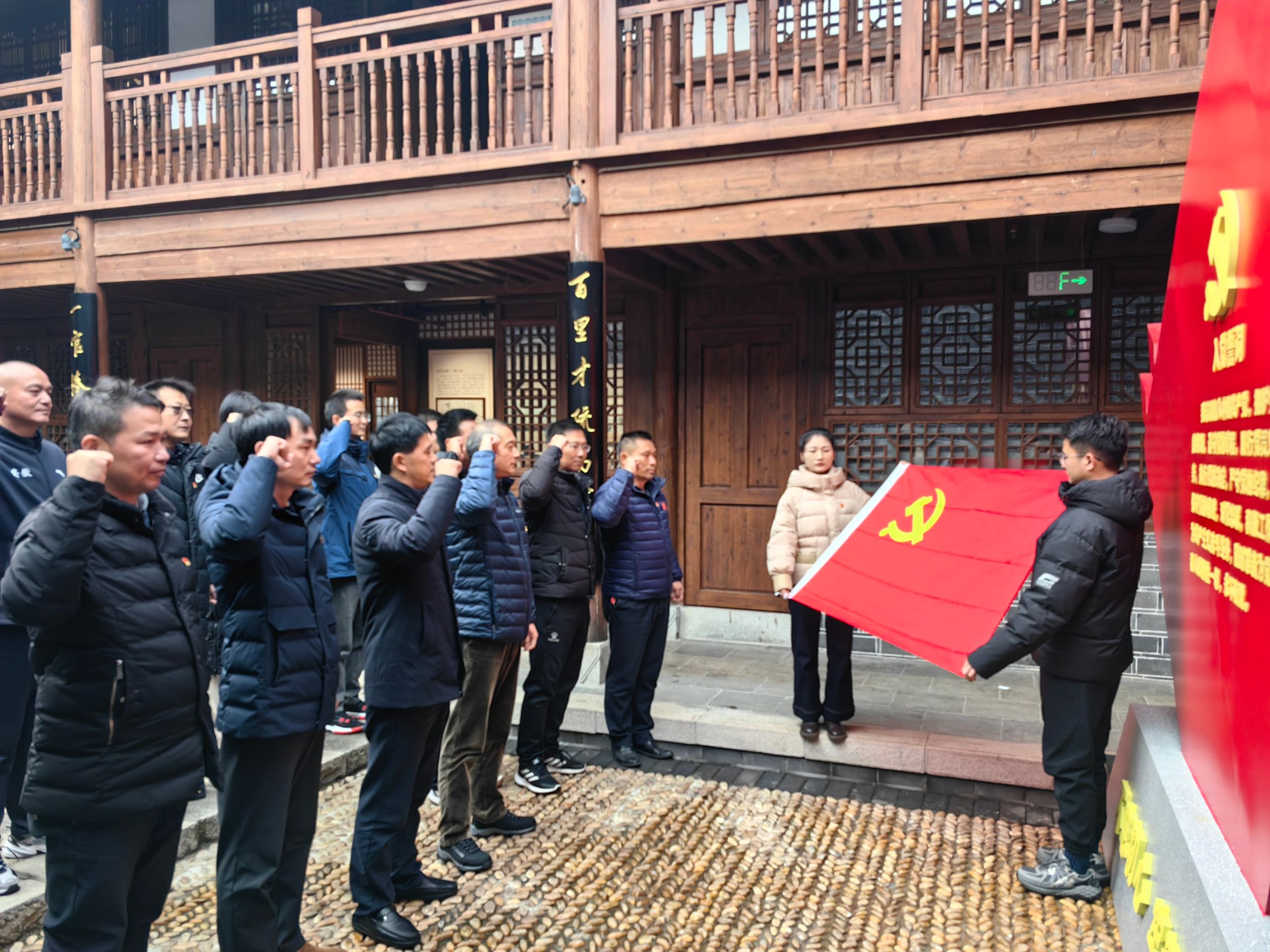 活动结束后,在鲜红的党旗下,全体党员们庄严肃立,紧握右拳、庄严宣誓,在铿锵有力、掷地有声的入党誓词中感悟初心使命、汇聚奋进力量。
