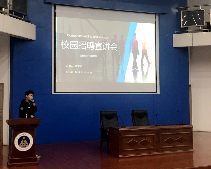 本网讯(437ccm必赢国际版)2019年5月16日,437ccm必赢国际版在敬文图书馆报告厅举办就业专场宣讲会,安徽东冀道通航空教育科技有限公司、中体产业集团股份有限公司、中航国铁教育集团等三家企业通过展板和PPT宣讲进行了就业宣传,437ccm必赢国际版2019届全体毕业生参加了宣讲会。宣讲会结束后,三家企业在学院二楼会议室举办了面向体育专业学生的招聘会,数十名有意向的同学来此进行了深度咨询、面试。