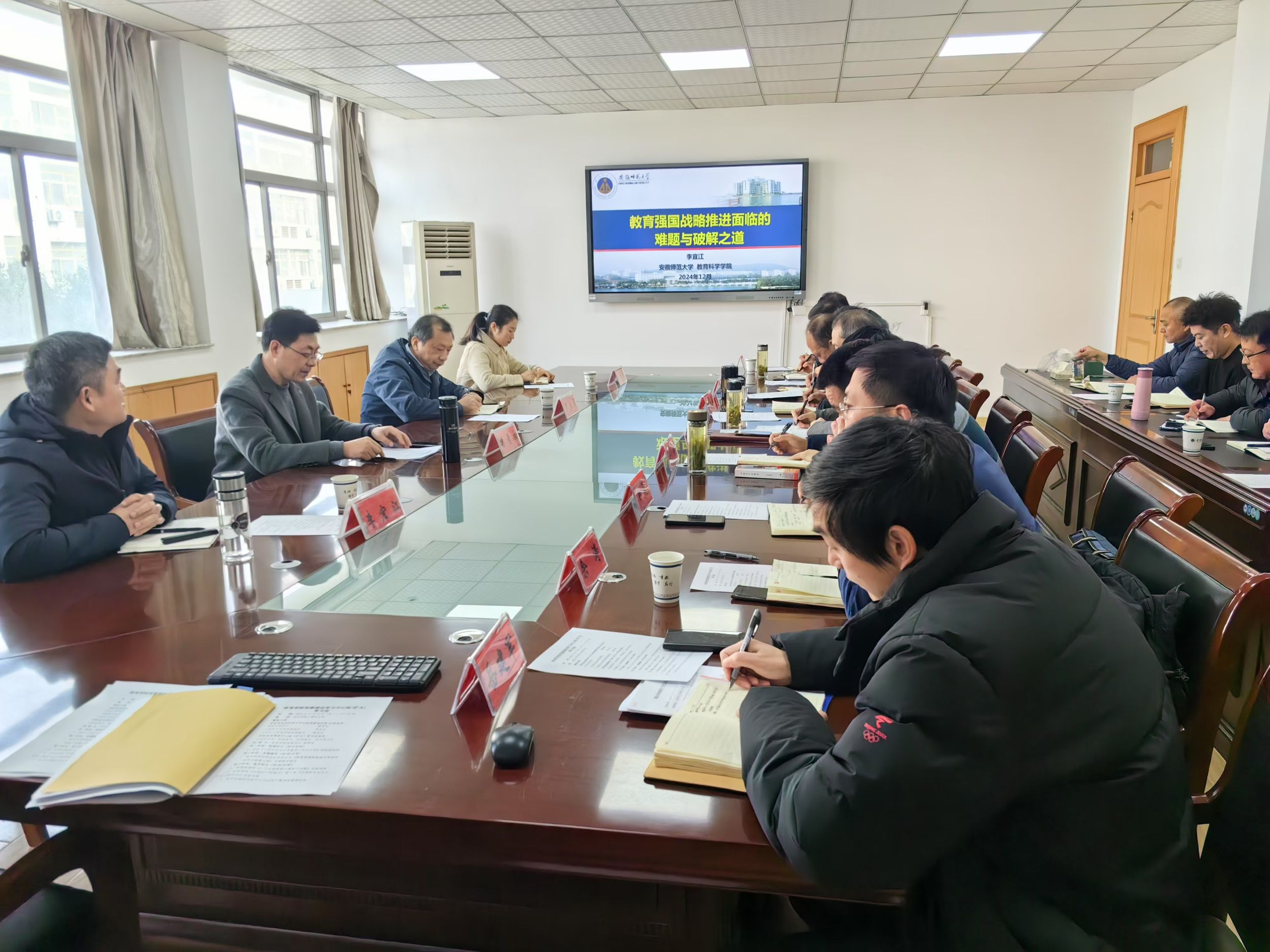 集中学习阶段,与会人员集体观看《习近平总书记考察澳门科技大学》的新闻视频,黄德春领学了《中国共产党章程》,院长金涛领学了《中国共产党简史》内容节选,副院长高守东领学了习近平总书记关于教育的重要论述。专题辅导阶段,邀请教育科学学院院长李宜江作《教育强国战略推进面临的难题与破解之道》专题辅导,报告围绕教育强国战略推进面临的难题、面临难题的症结分析、面临难题的破解之道等三个方面进行专题辅导。