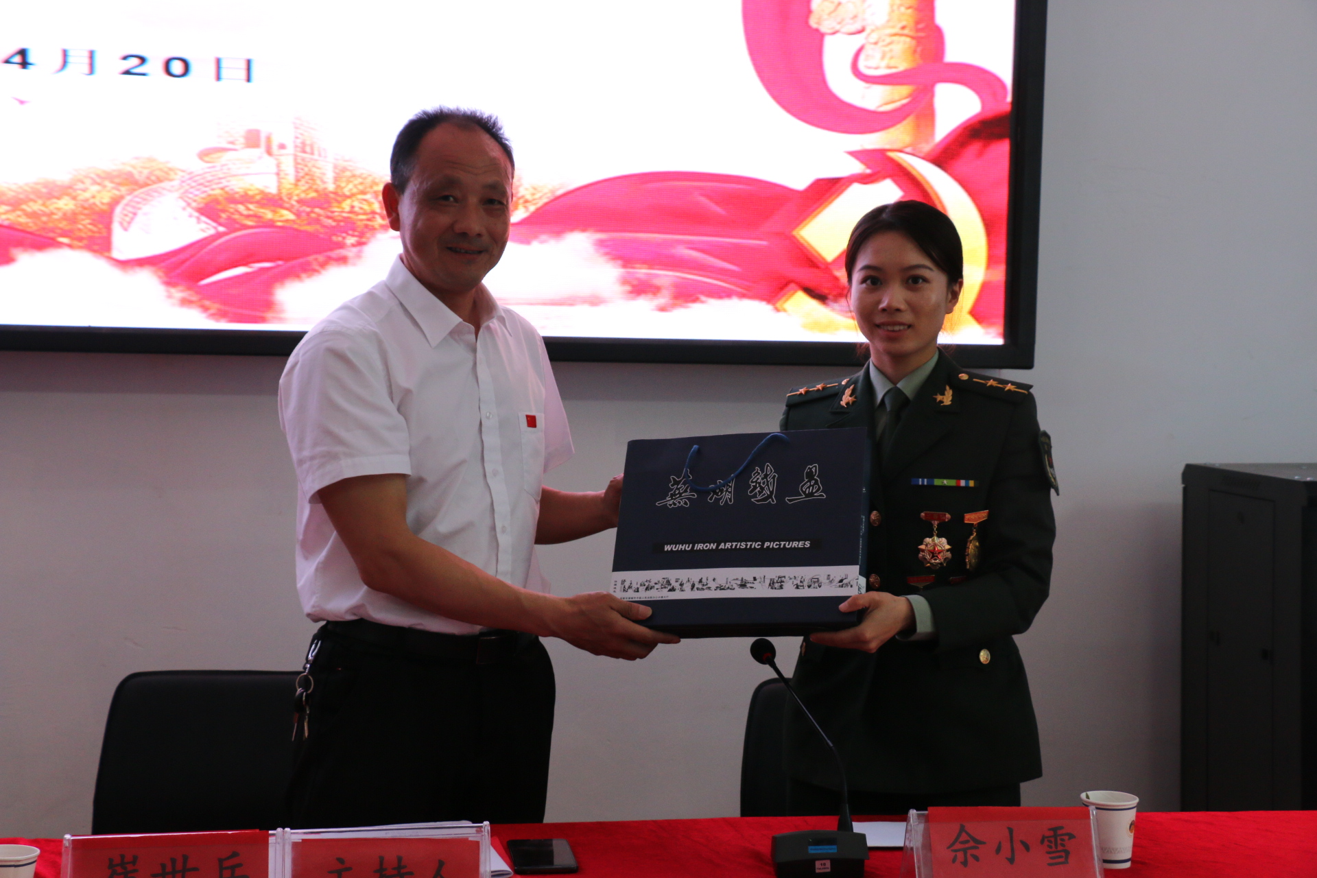 大会伊始,佘小雪的大学辅导员、现院党委副书记崔世兵深情回顾了佘小雪在我院就读时的优秀表现,介绍了其从一名普通女兵到全军优秀特战女兵的成长历程。佘小雪在报告会中与大家分享了自己在部队期间的训练视频和军旅成长故事,结合自己亲身经历对同学们入伍后的发展前景进行了分析和指导。在最后的互动环节,崔世兵、佘小雪与朱蕾共同对同学们提出的问题作了认真、详细地解答。报告会后,崔世兵代表437ccm必赢国际版向向佘小雪赠送芜湖铁艺画留作纪念。