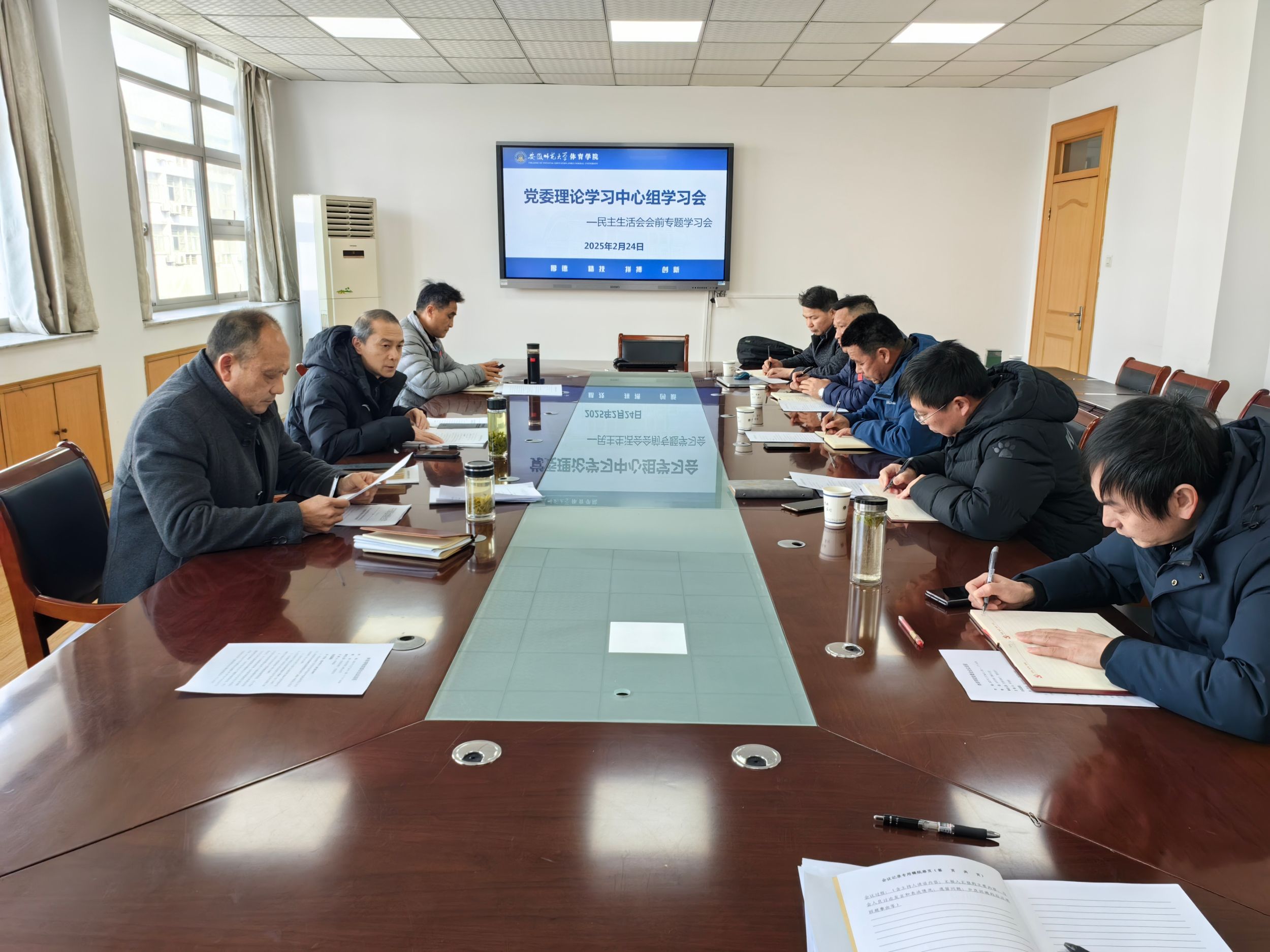 本次学习采取会前自学和会上集中学习相结合的方式。会前,参会人员专题学习了习近平总书记关于党的建设的重要思想、关于党的自我革命的重要思想以及关于全面加强党的纪律建设的重要论述、关于全面深化改革的一系列新思想新观点新论断以及习近平总书记考察安徽重要讲话精神、习近平总书记关于教育的重要论述,学习党章、《中国共产党纪律处分条例》和《中共中央办公厅关于推进党纪学习教育常态化长效化的意见》。