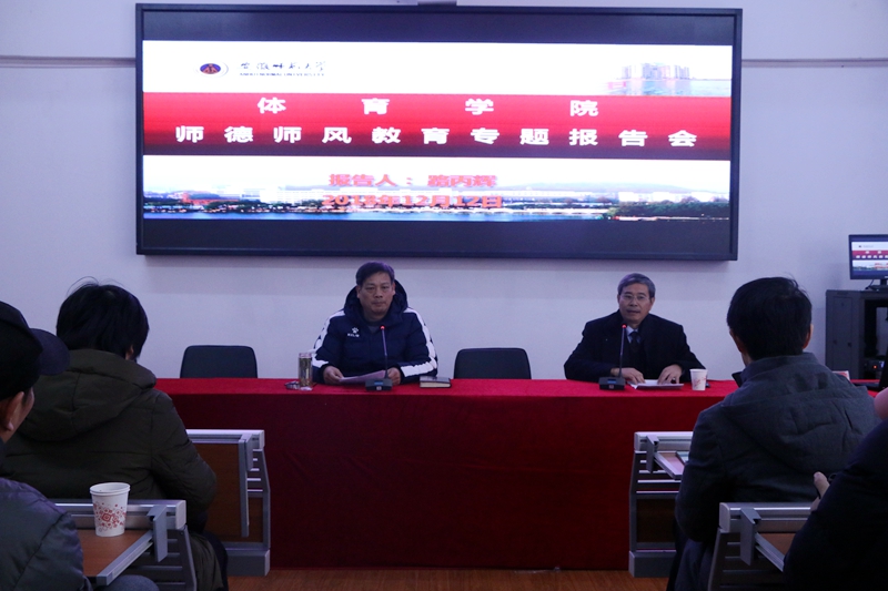 本网讯(437ccm必赢国际版 张义曜)12月12日下午,437ccm必赢国际版党委举办专题报告会,特别邀请了“全国师德标兵”、我校马克思主义学院路丙辉教授为全院教职工做师德师风教育专题报告。报告会由院党委书记袁德水主持。