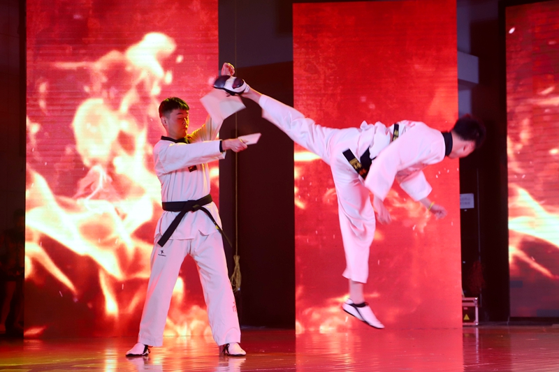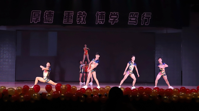 由本院学生自编、自导、自演的小品《我们的青春》生动展现了当代大学生对梦想的坚持,引起现场观众的共鸣。拉丁舞《梦幻之夜》舞姿优雅,如梦如幻;《武动青春》武术表演风格独特,威风凛凛,引爆全场。竞技健美操《榜样的力量》将力量与柔韧的完美结合,呈现出了精彩绝伦的表演,高难度的专业动作征服了在场的每位观众,迎来了观众们的阵阵欢呼与喝彩。歌曲串烧《青春赞歌》为本场晚会划上了圆满的句号,歌声中饱含着同学铿锵自信和对未来的无限希望,绽放着青春与梦想的光芒。其中15级舞蹈表演专业的辅导员吴家庚老师带来的北京小曲《探清水河》更是将本场晚会再次推上高潮。