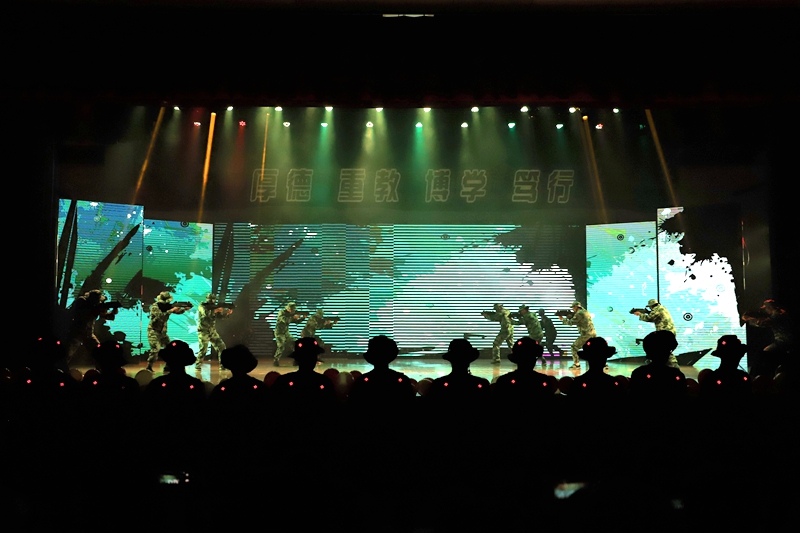 以我院2011级运动训练专业学生、现东部战区某部女子特战队小队长、军中“虎妞”佘小雪为原型打造的情景剧《特战训练》展现了我院学子不畏困难,勇往直前的拼搏精神。拉丁舞《最好的我们》展现了教师和学生之间浓浓的师生情,不散场的青春,不离弃的朋友,不言谢的老师。啦啦操串烧表演《花样年华》朝气蓬勃,激情四射。体院合唱团带来的《天空》作为校第十届“青春畅想”校园合唱大赛中获得一等奖的作品,彰显了437ccm必赢国际版合唱团的实力,现场洋溢着满满的青春气息。充满异域风情的舞蹈《萨拉玛》给现场观众营造出一种神秘,妩媚的情调;热情奔放的街舞《燃烧我的卡路里》赢得了现场的阵阵掌声。