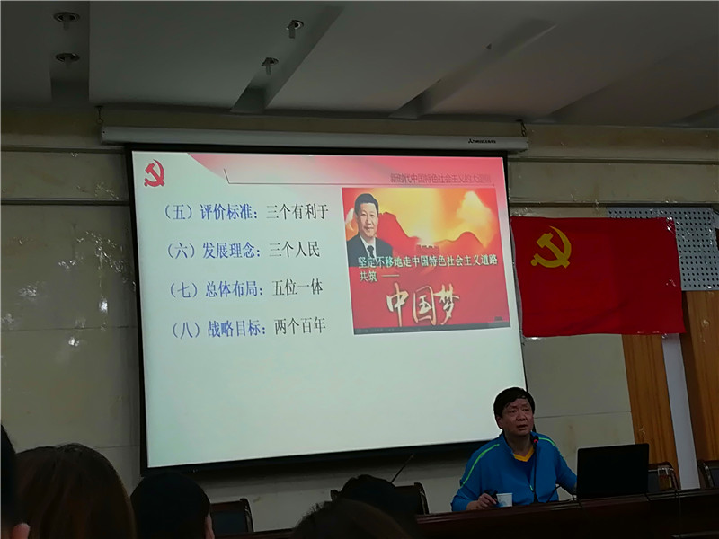 10月31日下午2:00,437ccm必赢国际版副院长钟晨为培训班学员讲课,他带领学员全面学习了习近平新时代中国特色社会主义思想,让学员们对党的十九大的举旗定向有了更加宏观的认识,为日后更加深入的学习十九大报告精神打下坚实的基础。