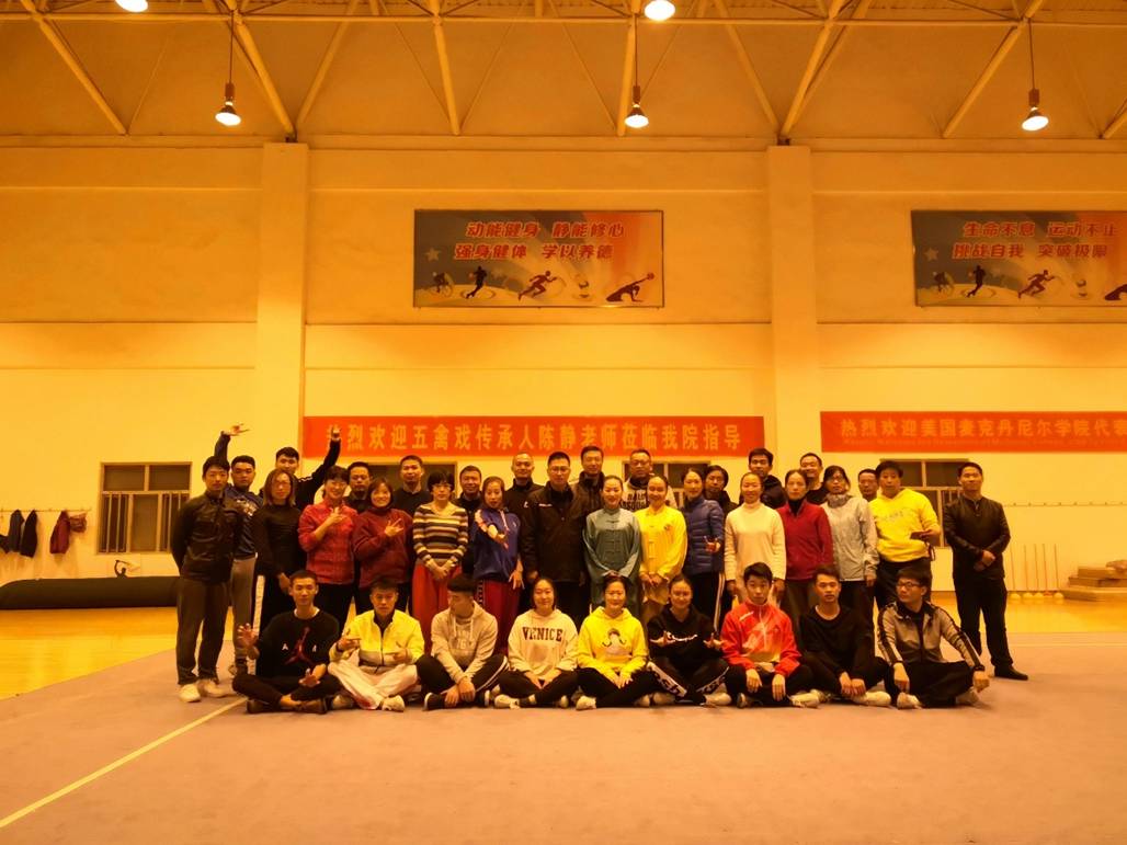 近年来,为了保护和传承我国传统体育文化,437ccm必赢国际版着力推出一批以传统体育文化为特色的大学体育课程,现已开设太极拳、毽球、秧歌、武术、舞龙、舞狮等一系列的传统体育课程。目前,为了进一步丰富大学体育传统体育课程内容,五禽戏也将纳入我校“传统体育进入校园计划”。五禽戏有着悠久的历史,是中国传统健身功法,同时也是安徽健身项目的品牌和安徽全民健身新形象的名片。本次五禽戏培训以提高我院师生的五禽戏技能水平,了解五禽戏的文化底蕴,理解五禽戏的健身机理为主要目标,为明年五禽戏在我校地全面推广和传播奠定坚实基础。