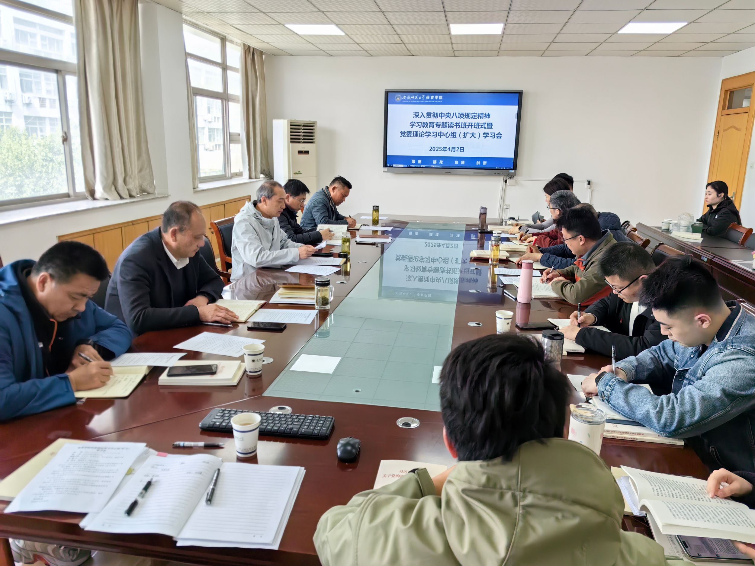 4月2日下午,437ccm必赢国际版在三楼会议室召开深入贯彻中央八项规定精神学习教育动员部署会暨专题读书班开班式。学院领导班子、党委委员、支部书记、教师代表等参加会议,会议由院党委书记黄德春主持。