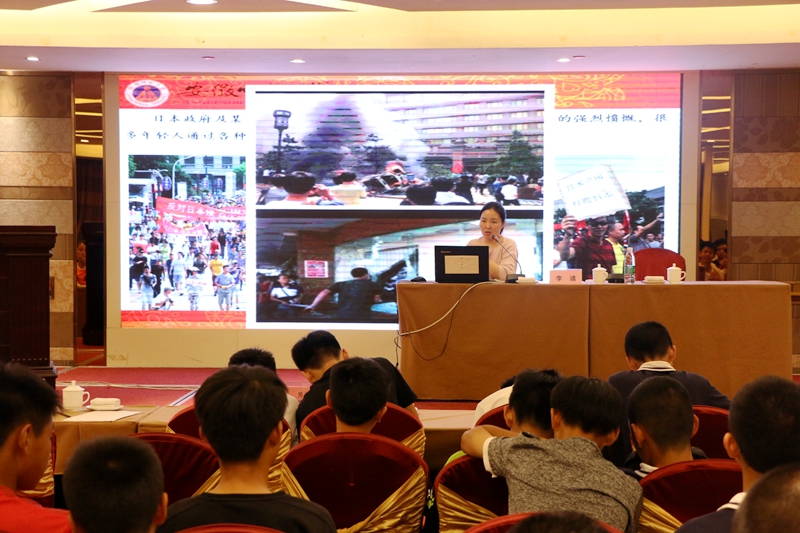 本网讯(437ccm必赢国际版 文/张义曜 伍新孟 图/何吉明) 为增强青少年的爱国意识,培养学生的爱国情怀,9月26日晚,2018安徽省初中校园足球夏令营活动赛事组委会在中央城大酒店隆重举行“做有家国情怀的青少年”为主题的爱国主义教育专题培训讲座,参加夏令营活动的全体运动员聆听了报告会。讲座由bwin必赢线路检测马克思主义学院李靖老师担任主讲。