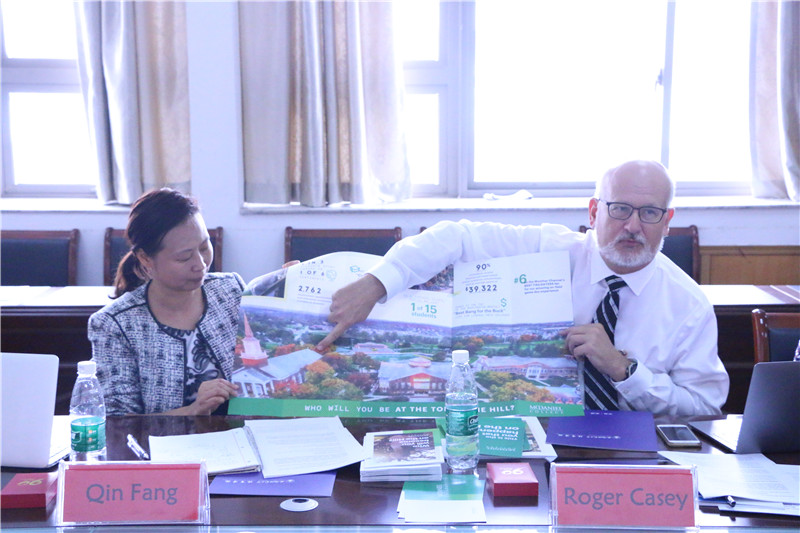 会议开始,袁书记首先对访问团的到来表示欢迎。437ccm必赢国际版院长介绍出席本次会议的领导、老师。随后,席院长直入主题,就进一步推进专业合作1+1+1研究生合作项目、本科生2+2项目等方面开始展开交流。在席院长的讲话后,Roger Casey校长就中国与美国教育模式、437ccm必赢国际版与美国麦克丹尼尔大学合作专业的方向、赴美留学人数等问题同我院进行交流。