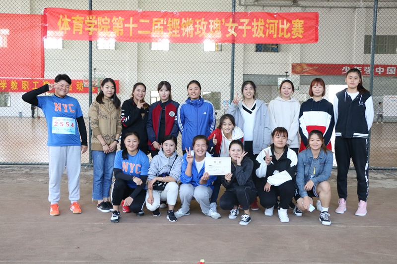 共有来自全院的9支队伍参加了此次比赛。比赛实行三轮淘汰制的比赛方式,抽签分组决定比赛顺序。比赛开始后,加油助威的同学爆发出了响彻云霄的呐喊助威声,在这种氛围的烘托下,各队队员们更是卯足了力气,秉着不服输的精神,拼劲全力为班级争得荣誉。经过三轮的激烈角逐,17级运动训练专业以巨大的优势取得了本次比赛的最终胜利。他们连续两届获得“铿锵玫瑰”女子拔河比赛冠军,可见实力不俗。最后,由本次大赛负责人为17运动训练专业颁奖并合影留恋。