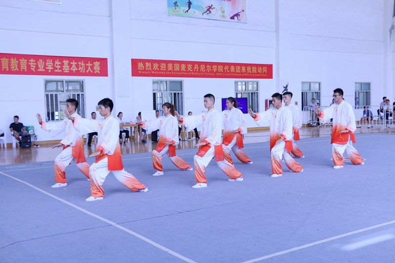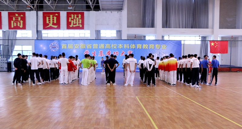 本次大赛由安徽省教育厅主办,bwin必赢线路检测承办。共有来自全省各地的10所高校代表队的80名参赛选手参加比赛。此次比赛内容丰富,包含了理论考试(体育教育专业基础理论、英语理论)、专业实践比赛(队列队形、排球、太极拳、足球、跳高、接力)及微课比赛三个部分。本届大赛的举办,旨在检验我省高校体育教育专业教育教学水平,促进我省体育教学改革,进一步提高我省高校体育专业人才的培养质量。