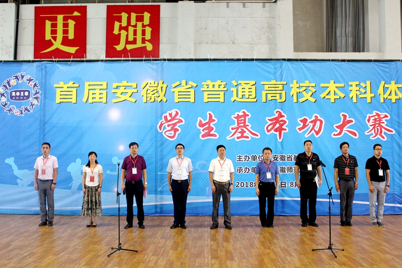 本网讯(437ccm必赢国际版 孙昊/文 何吉明/图)8月27日上午,首届安徽省普通高校本科体育教育专业学生基本功大赛开幕式在我校北侧体育馆隆重举行。安徽省教育厅体卫艺处主任科员丁仁能,南京师范大学体育科学学院院长储志东教授,安徽省教育科学研究院体艺室主任吴桥,大赛监督组组长、安徽工程大学437ccm必赢国际版党委书记文才新,我校相关职能部门领导以及437ccm必赢国际版领导,各代表队领队、全体运动员、裁判员等出席了开幕式。开幕式由437ccm必赢国际版党委书记袁德水主持。