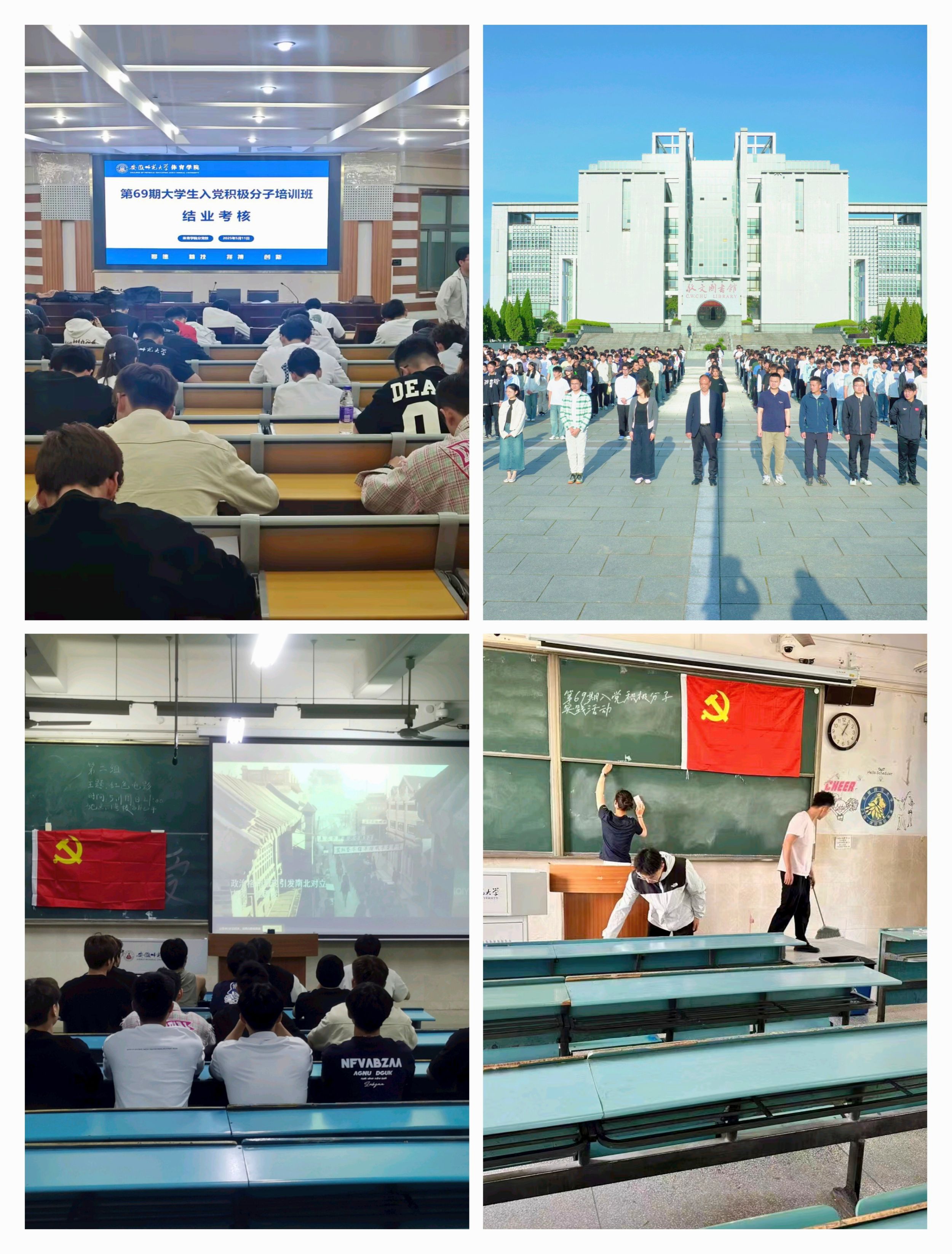 为巩固学习成效,5月11日晚上,全体学员参加入党积极分子培训班结业考试,本次考试立足培训课程体系,深度融合培训教材核心要义与最新时政热点,通过理论闭卷形式系统检验学员政治素养与知识储备。5月13日清晨,全体学员在雄壮的国歌声中参加升旗仪式,通过“国旗下的思政课” 主题校园升国旗活动,进一步筑牢理想信念根基,厚植爱党爱国情怀。本次培训同步开展多层次实践锻炼:组织分组专题研讨深化理论认知;集中观看《建党伟业》强化党史学习;扎实开展文明教室实践和校园文明交通引导志愿服务。通过“学思践悟”有机融合的教学模式,切实提升学员的思想政治觉悟和担当奉献精神。