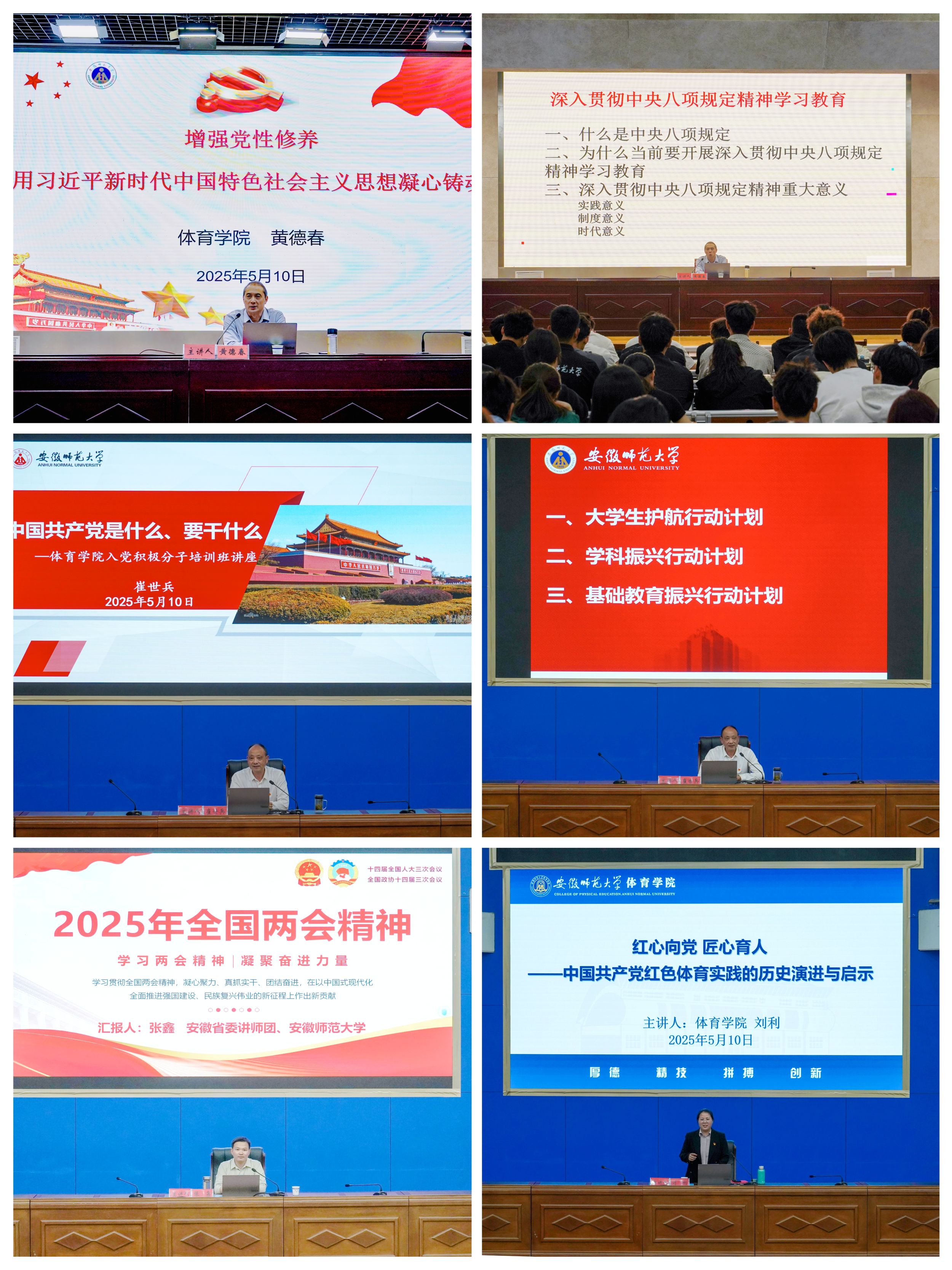 理论授课环节,黄德春以《增强党性修养 用习近平新时代中国特色社会主义思想凝心铸魂》为学员做了专题辅导,要求学员将淬炼党性作为入党的终身课题,他还对深入贯彻中央八项规定精神学习教育的深刻内涵和重大意义作了专题讲解;崔世兵以《中国共产党是什么、要干什么》为题,用鲜活生动的案例为学员讲解了党的性质、宗旨和使命,同时,他还对学校“三大行动计划”进行了解读;437ccm必赢国际版教师刘利副教授结合个人学术研究,带领全体学员学习了《中国共产党红色体育实践的历史演进与启示》,引发大家对党史与专业融合的深度思考;马克思主义学院张鑫副教授以《学习两会精神 凝聚奋进力量》为主题,紧扣时代脉搏,融入体育元素,结合个人研究与思考,为全体学员学习贯彻2025年全国两会精神作了专题解读。