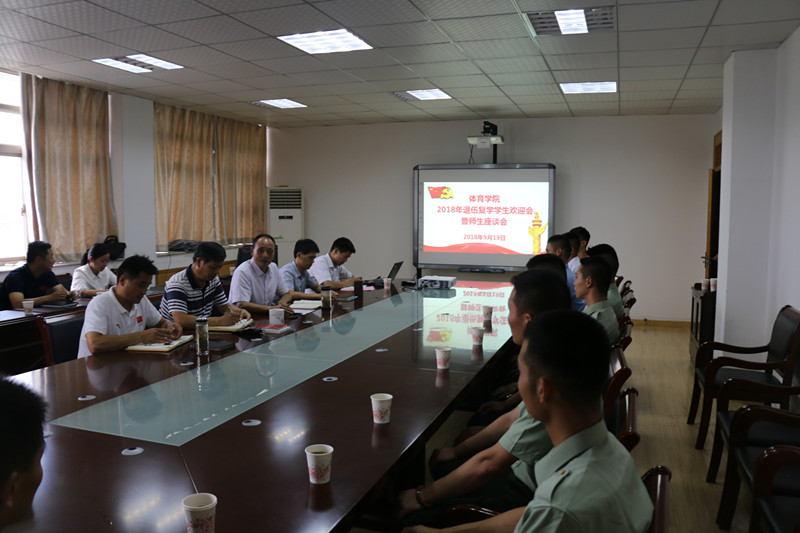 本网讯(437ccm必赢国际版 伍晨晨)9月19日,体育学院组织召开退伍复学学生欢迎会暨师生座谈会。院领导班子成员、专业负责人、教学秘书和全体专兼职辅导员参加了会议。会议由院党委副书记崔世兵主持。
