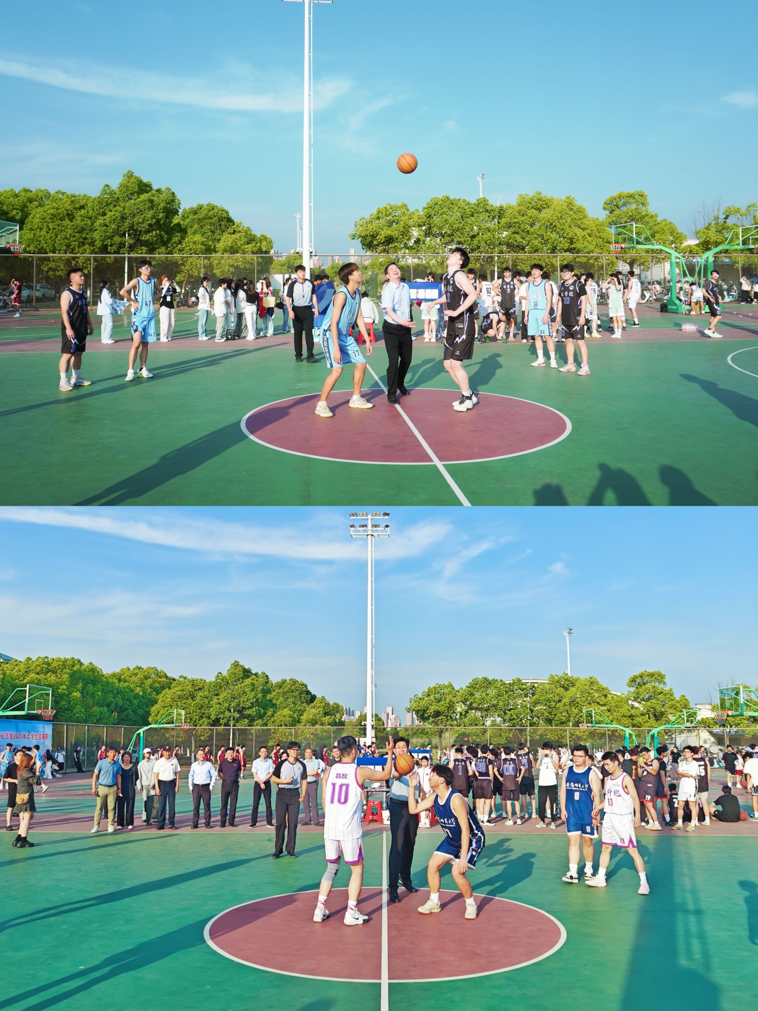 本网讯(437ccm必赢国际版)为深入推广体育文化,促进学生全面发展,5月14日17:00,bwin必赢线路检测第三届校园体育文化节暨2025年大学生篮球赛在花津校区南侧篮球场开幕。校党委副书记胡靖,校党委常委、副校长、校体委主任桑青松,校宣传部常务副部长汪凯,校教务处处长崔光磊,校必赢国际处处长邵登辉,校团委副书记张虹,437ccm必赢国际版党委书记黄德春,副院长余涛,比赛监督蒋先军,比赛裁判长刘姝出席开幕式,开幕式由余涛主持。