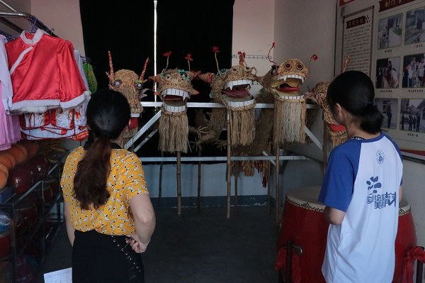 7月20日上午,扬溪小学领导带夏令营团队参观了学校的非物质文化遗产室——草龙宣传室。舞草龙是绩溪的习俗,更是省级非物质文化遗产。