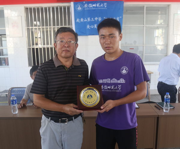 19日上午8时,赴黄山三中“阳光体育”爱心夏令营活动开营仪式在黄山三中会议室如期举行。首先,支教者代表陶娜发言,她承诺会以高度的热情,抱着服务的心态,尽快适应环境,投入实践,学以致用。之后,陈校长赞扬了支教队不惧艰苦来支教的精神,对支教队赴黄山三中、仙源小学进行支教活动的行为表示肯定和感谢,他衷心祝愿本次支教圆满成功。继而,“阳光体育”支教队全体队员宣誓,支教队队员赵杨领誓。最后,在bwin必赢线路检测建校90年之际,由队长杨文杰代表支教团队向陈校长赠送师大周年纪念品,并亲切留影合念。饱含杨文杰队长深切情谊的赠礼仪式圆满结束之后,支教课堂拉开帷幕。