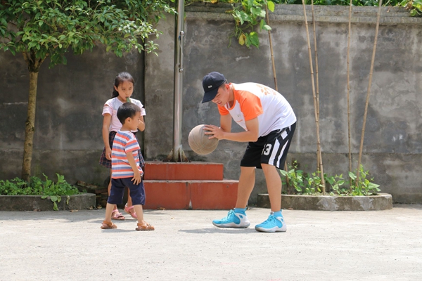 二人对战八人,谁胜谁负?篮球课上,志愿者李泽渔在简单介绍篮球知识后,用一个个动作加深孩子们的理解。随后他将班级里同学分为两组进行篮球比赛,其中志愿者与班级里最高的学生赵马仪为一队与另外八名同学进行比赛。身高的优势让赵马仪与志愿者占了较大的优势,任孩子们跳起来、抱住大腿还是团团围住,志愿者与赵马仪总能轻而易举的让篮球飞跃头顶落进篮筐。“老师,我最喜欢篮球了,我以后要成为中国打篮球最厉害的那个人!”赵马仪骄傲的昂起头说着,豆大的汗珠从他额头滚落,他喘着气靠在柱子上和志愿者聊着篮球。“每次不开心的时候我就一个人练习投篮,不停的投篮,不停的跳跃奔跑追逐,直到大汗淋漓,就像是把不开心的事情都流出体内一样。”赵马仪笑着说完后,挥挥手又跑进了球场,那篮球“哐”的一声似乎是在回应他的热爱。