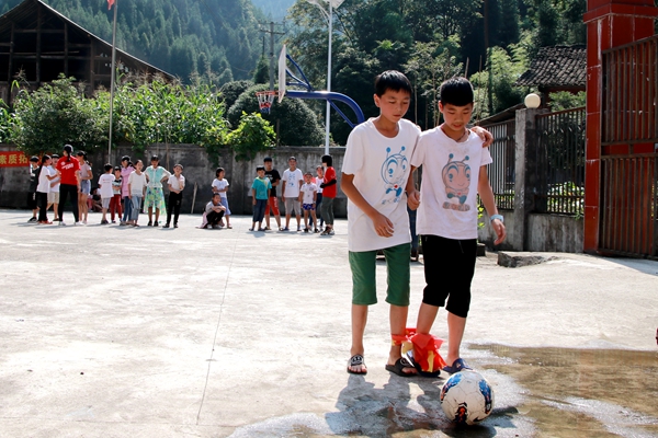 本网讯(437ccm必赢国际版 文/熊鑫钰 图/熊鑫钰)寓教于乐,凝心聚力;走出课堂,零距离感受体育魅力。为在孩子形成人生观、价值观、世界观的关键时期进行引导,437ccm必赢国际版“爱心蚂蚁 阳光体育”爱心支教团队于7月26日上午开展素质拓展活动,鼓励孩子们在操场上挥洒汗水,通过肢体运动,传递心灵律动,传递锐意进取、团结协作的体育精神,鼓励当地孩子追逐、奔跑、奋斗,冲向更美好的未来。上午9时,“爱心蚂蚁 阳光体育”爱心支教团队之素质拓展活动正式拉开帷幕。