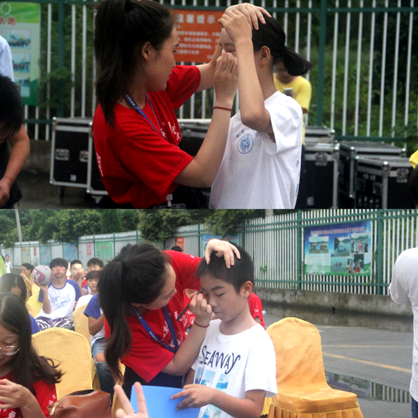 紧张的彩排、布置会场、搬器材……为了活动能够顺利进行,志愿者们29晚上12点才结束工作回到宿舍休息,第二天早上五点又早早地起来工作。在如此高温的天气下忙前忙后,志愿者一个个都汗流浃背,始终没有一丝怨言。难得空下来,志愿者坐在地上休息缓解疲劳,周围的学生看到后都会不自觉的放低声音,拉拉身边人的手,示意不要吵醒我们的小老师。