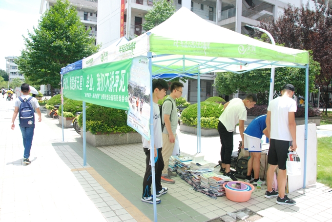 为了避免资源浪费,培养在校大学生文明离校、绿色离校理念,即将毕业的同学们在离校之际将可用的书籍、衣服和学习生活用品收集,捐赠给我校扶贫工作点宿松县三德村凉亭镇以及四川“爱心蚂蚁”国际志愿者服务组织,让爱心持续传递,这既帮助学校解决离校垃圾的问题,又充分利用旧物进行捐赠,极大帮助了贫困地区有需要的人。在活动期间,“绿色离校”志愿者们不辞辛苦,顶着烈日每天准时到达摊位耐心守候,主动去各宿舍楼上门回收,毕业生们也纷纷表示,自己临走之时能够为母校做点贡献,做到物品循环利用,非常的有意义。