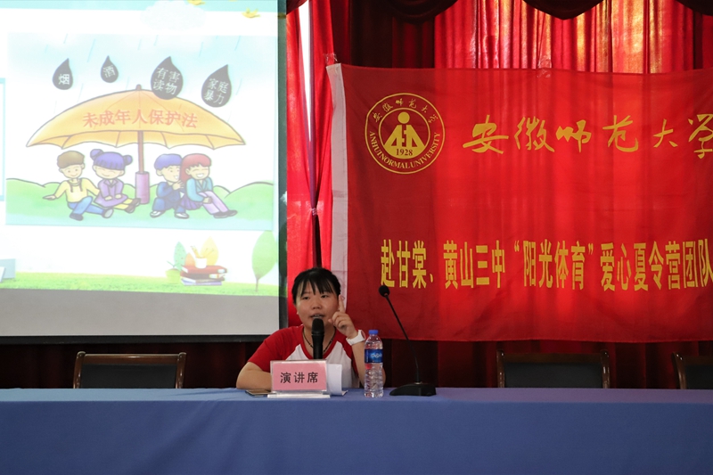 本网讯(437ccm必赢国际版)7月18下午三时,bwin必赢线路检测赴甘棠中心学校“阳光体育”爱心夏令营法制安全教育讲座召开,本次讲座由bwin必赢线路检测2016级法学专业马婉茹同学主讲,在讲座中和孩子们互动活跃,一场法制安全教育讲座顺利开展。