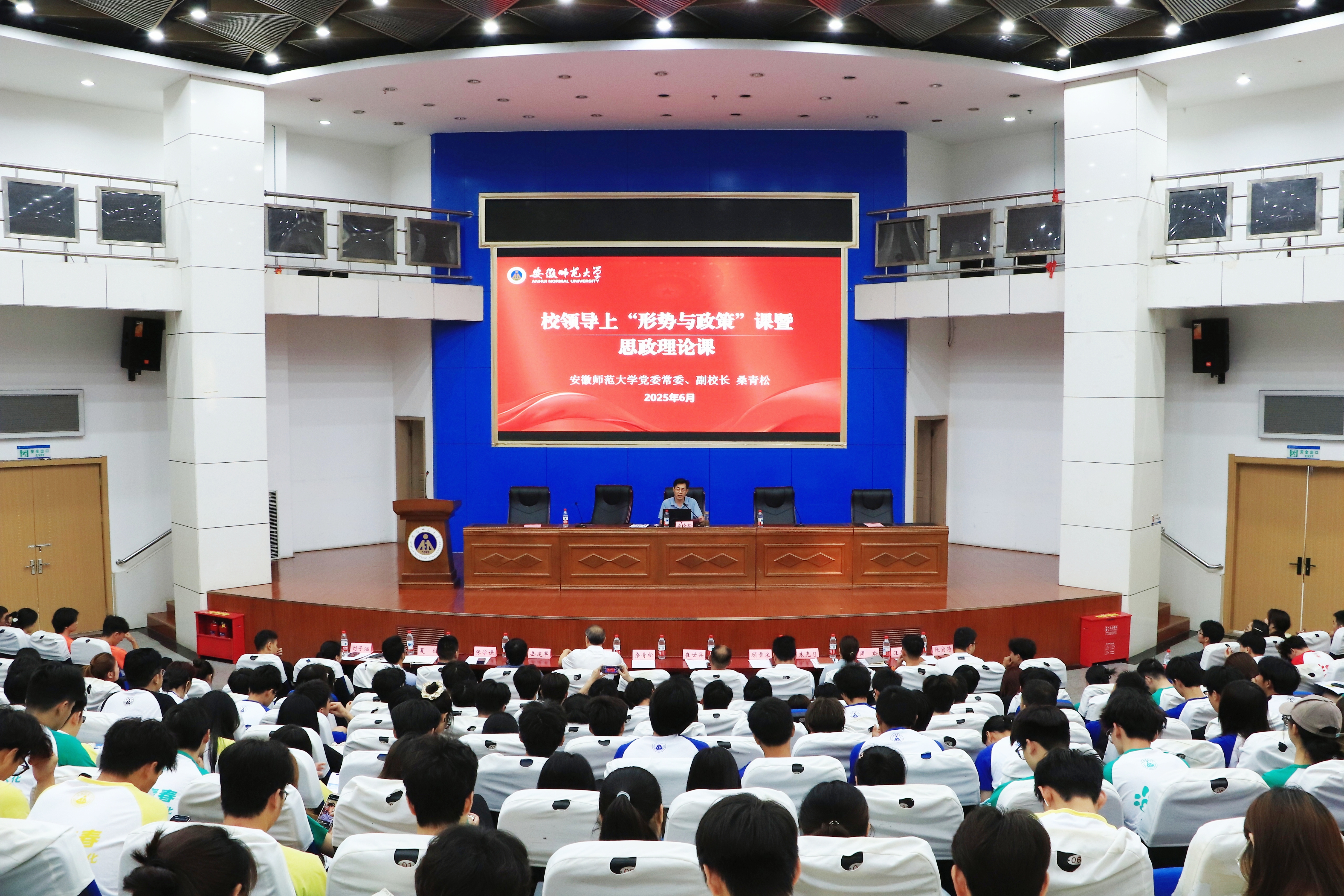 6月24日下午,校党委常委、副校长桑青松为437ccm必赢国际版师生讲授“形势与政策”课,437ccm必赢国际版党委副书记崔世兵、副院长岳建军、2023级全体本科生及辅导员现场聆听,本次专题课由437ccm必赢国际版党委书记黄德春主持。