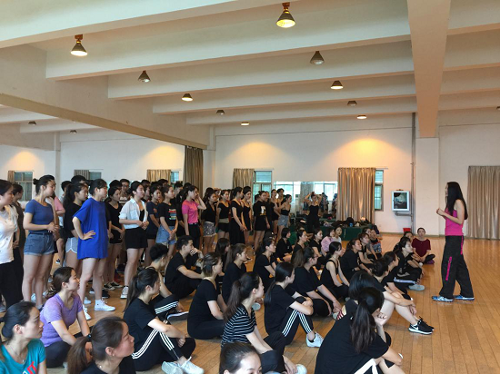 随着热情欢快的音乐响起,公开课开始了,同学们自发的排好队伍。只见台上阮老师灵活的扭动着尊巴舞步,舞姿轻盈曼妙,不断做出指示手势的同时还不忘与大家互动;台下同学们努力认真地跟上阮老师的节奏。由于不间断的持续1个小时,大家渐渐放慢了节奏,为了鼓励大家,阮老师几次在台下与同学们进行互动,一起舞蹈,激发了同学们的学习热情,使整个教室充满了欢快的氛围。临近结束,音乐开始变的舒缓,阮老师带着大家做起了放松拉伸活动。