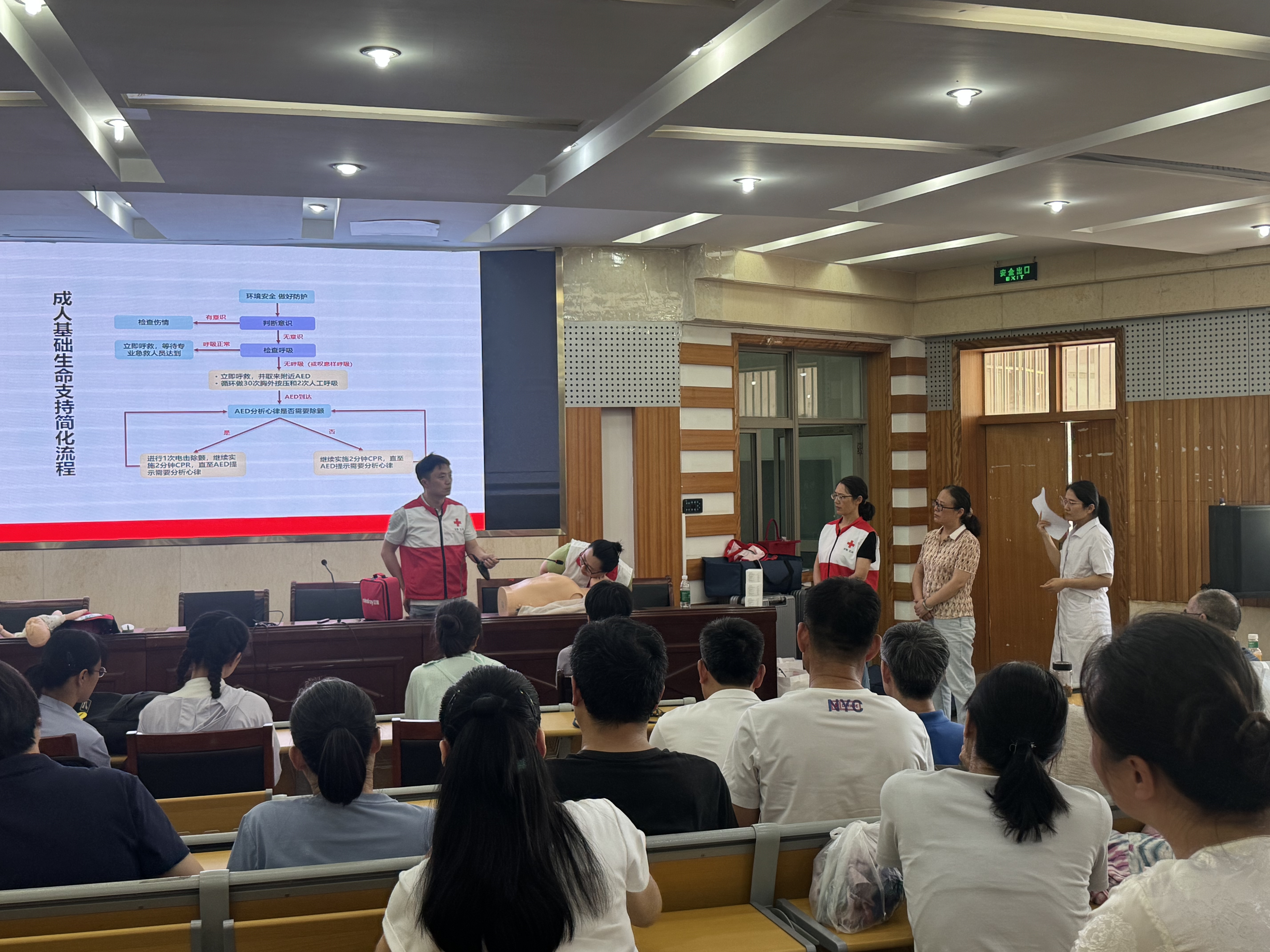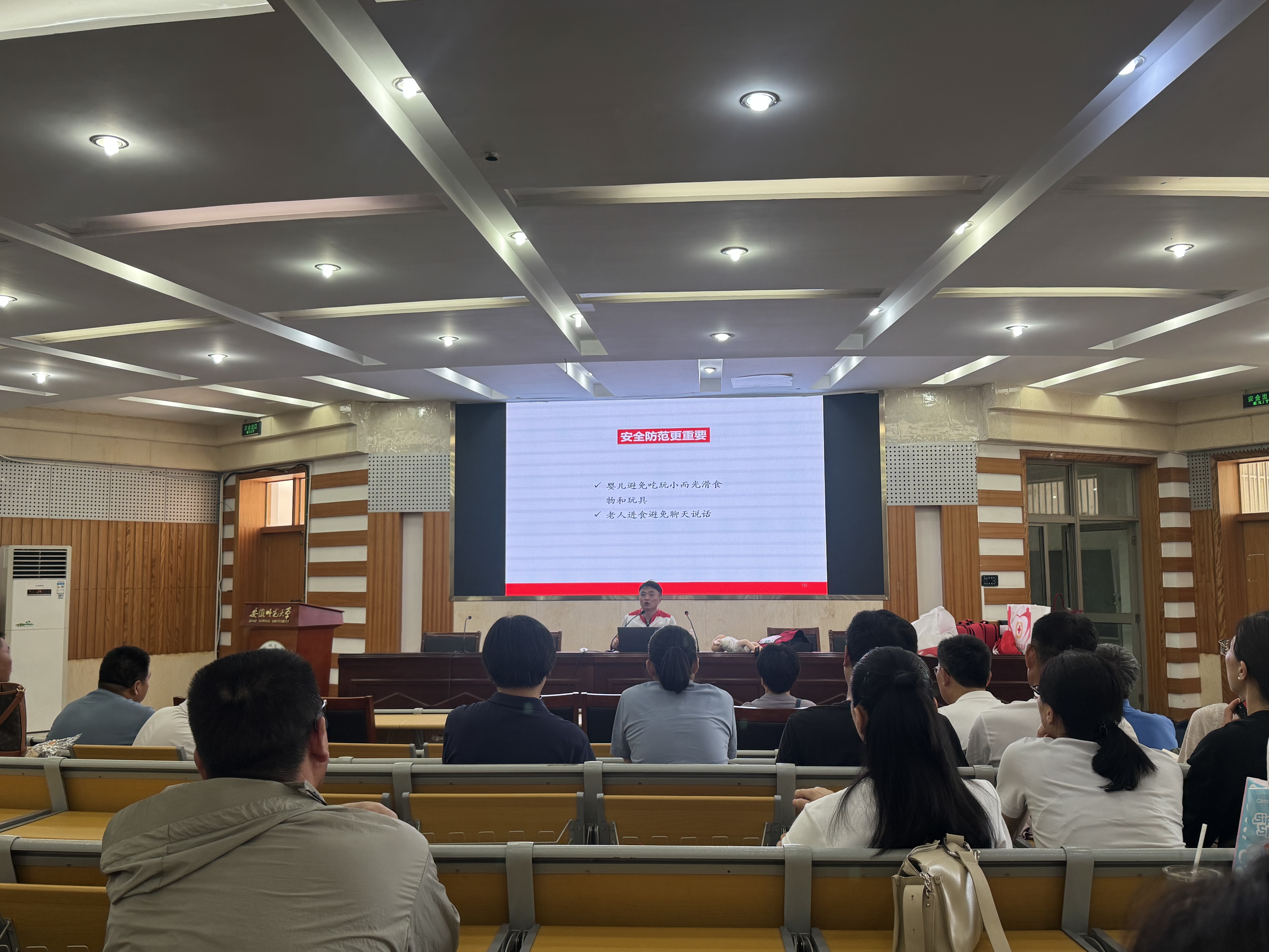 本网讯(437ccm必赢国际版)为进一步加强我校急救体系建设,提升校园应急救护和生命安全保障能力。7月5日上午,437ccm必赢国际版全体教职工在8号楼副二楼报告厅参加第一期急救教育培训工作。