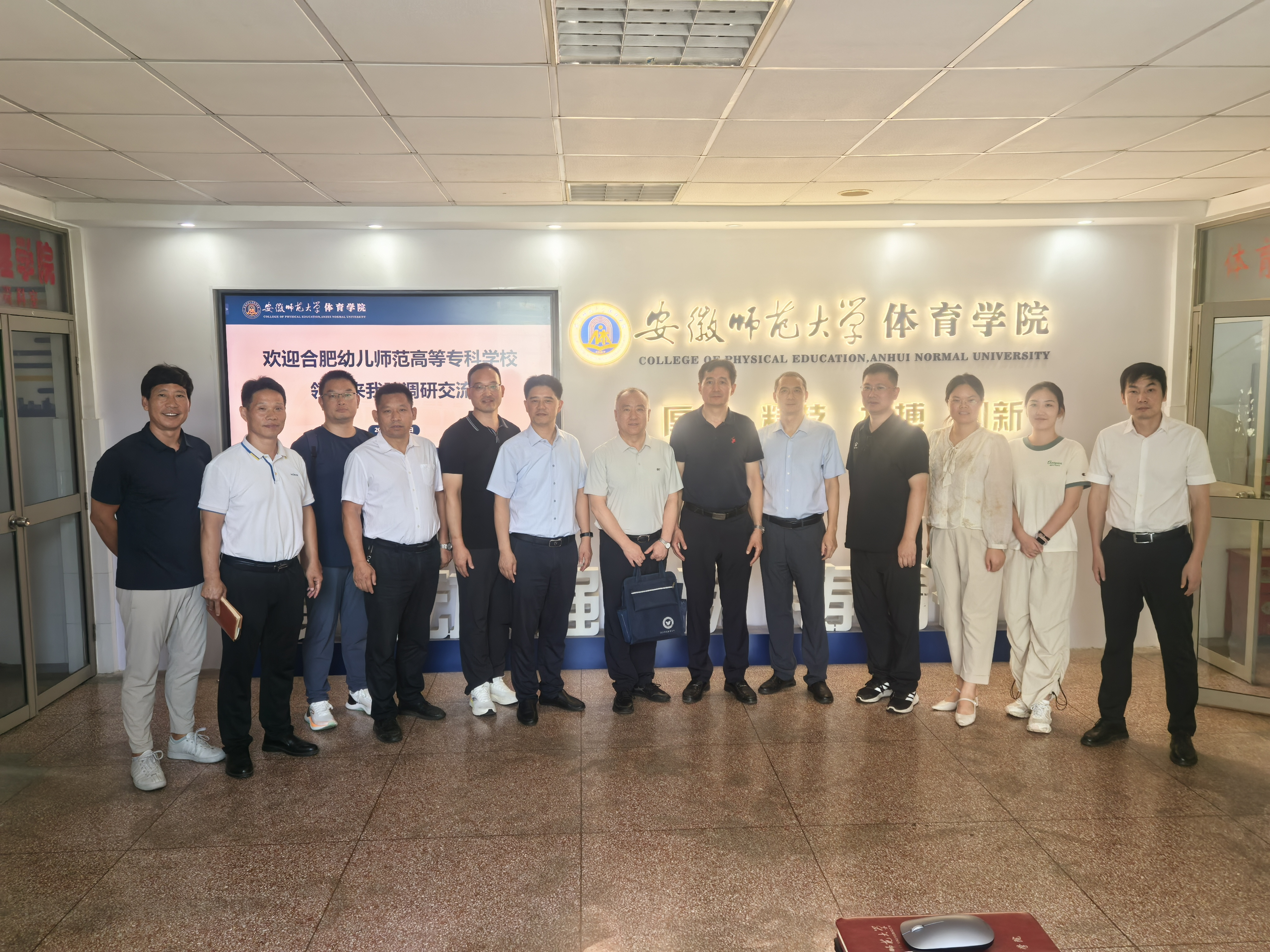 8月25日下午,合肥幼儿师范高等专科学校公共教学部主任赵青松、体育教育专业带头人武昌桥等一行来我院调研交流。学院领导班子成员、相关专业负责人等参加座谈会,会议由党委书记黄德春主持。