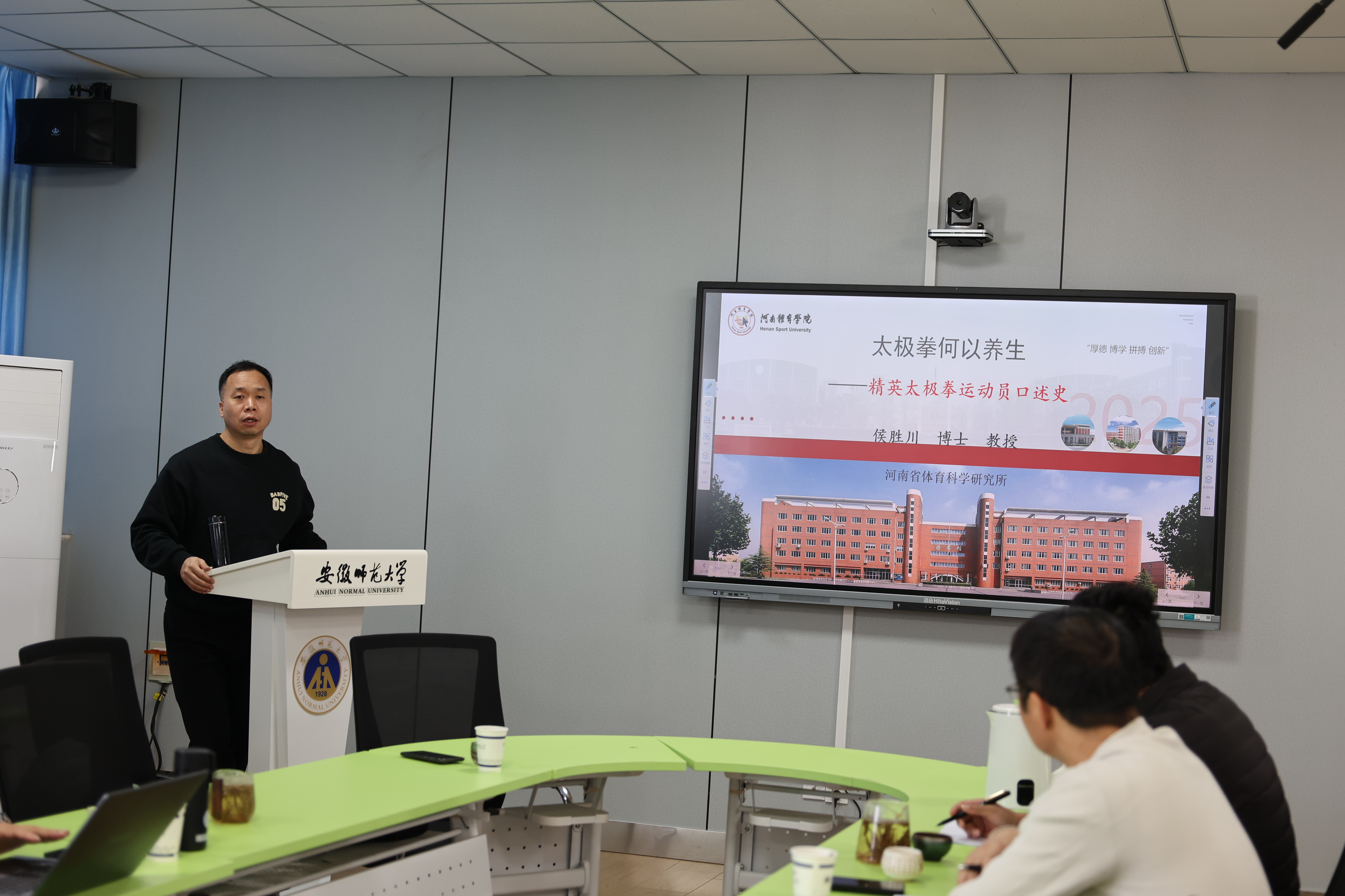 本次论坛上午由河南437ccm必赢国际版侯胜川教授围绕“太极拳何以养身”进行主旨演讲,进行圆桌会议,在与谈人花家涛、杨亮斌、俞鹏飞老师的参与下,就体育主体性思考、个体性与社会性、体育运转逻辑及其影响、大小历史互观、口述史等体育自主知识的认识论与方法论问题进行了三个多小时的研讨。