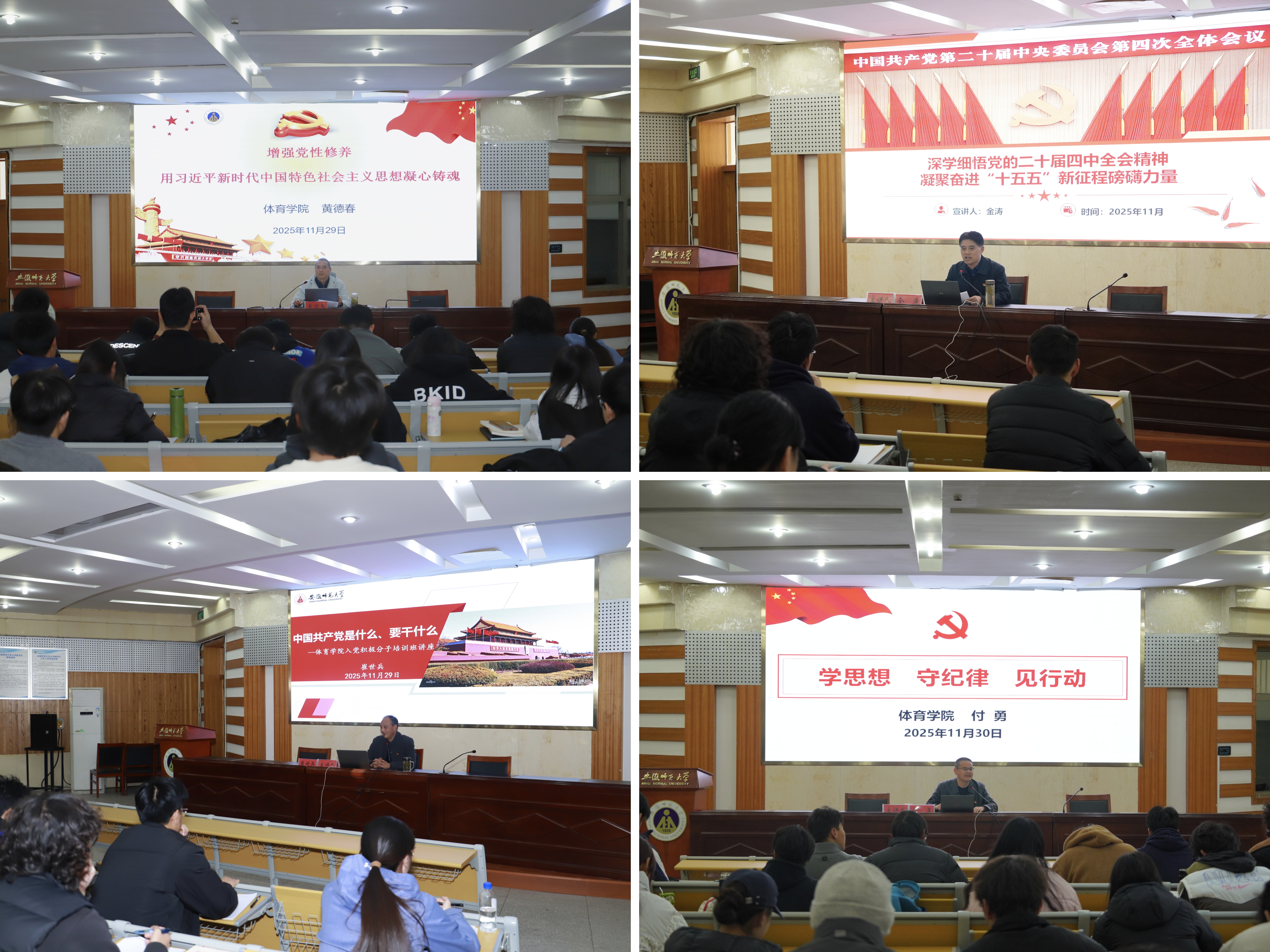 贯通理论实践“结合点”。院长金涛结合体育学科特点,生动宣讲党的二十届四中全会精神,推动党的创新理论融入专业学习与未来发展规划。