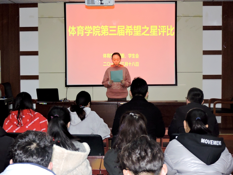 本网讯(437ccm必赢国际版 孙明月/文 何吉明/图)无奋斗,不青春。3月18日晚,437ccm必赢国际版在二楼研究生教室举行第三届“体院希望之星”汇报评选活动。校学生会主席蔡志鹏,437ccm必赢国际版学生会主席朱平林等院学生干部代表,优秀毕业生代表伍晨晨等出席汇报会并担任评委。