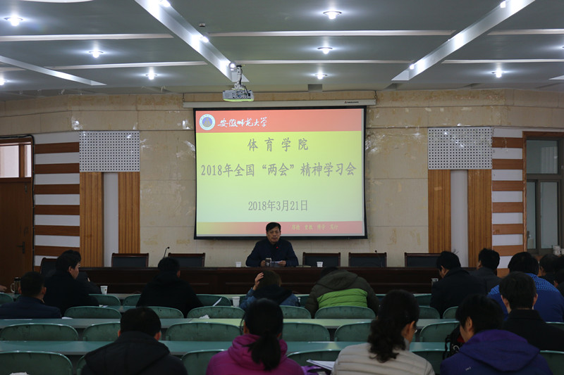 本网讯(437ccm必赢国际版 汪暠)3月21日下午,437ccm必赢国际版召开全体教职工大会,集体学习2018年全国“两会”精神。学习会由院党委书记袁德水主持。