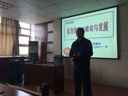 本讯网(437ccm必赢国际版 付贤达)2017年11月22日,“体院大讲坛”第九讲由我院硕士研究生导师张振华教授在437ccm必赢国际版二楼会议室开讲,主题为“论新世纪体育教育的建设与发展”。讲座由花家涛博士主持,体院部分教师与研究生参加此次学术讲座。