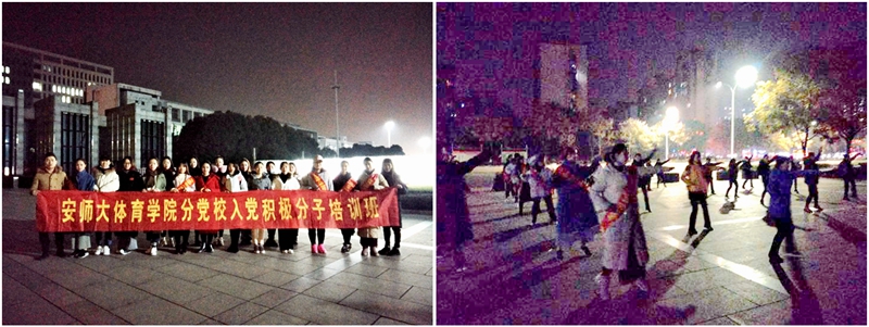 11月25号晚,体育学院分党校第23期入党积极分子培训班学员于柏庄小区开展“阳光体育”科学健身社区行活动,努力营造全社会崇尚健身、参与健身、支持和推动全民健身事业发展的良好氛围,积极号召和引导全民参与广场舞活动,展示广场舞健身活动成果,激发广场舞健身活动热情,享受广场舞健身活动乐趣,感受广场舞健身活动魅力。旨在以集中推广展示科学健身项目的形式,大力宣传全民健身活动的重大意义,不断提高广大人民群众的健身意识,激发人民群众健身热情。