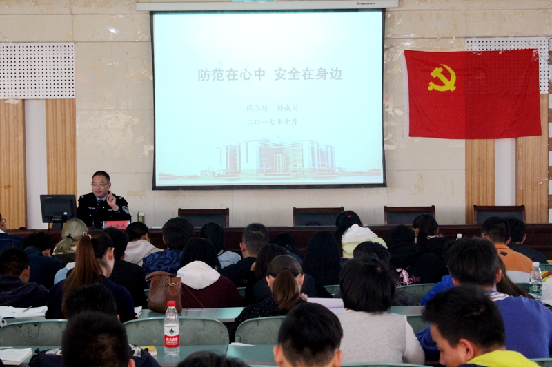 报告会上,孙成岗处长围绕“校园暴力、交通安全、财产安全、食品安全”等四大主题进行阐述并通报了近期校园安全形势。孙处长结合各大高校真实案例,以视频形式对校园暴力、交通安全、财产安全、食品安全四个校园安全类型作了重点讲解和深入分析。为使同学们对校园安全案件加深了解,加强防范,孙处长从案件类型、作案地点和作案对象等方面重点说明了高校安全案件发生的特点,解释了诈骗犯常见的几种骗术,并详细地阐述了应对措施和防范方法。