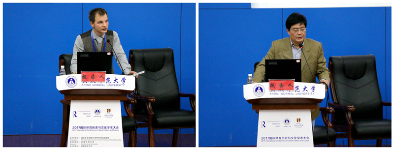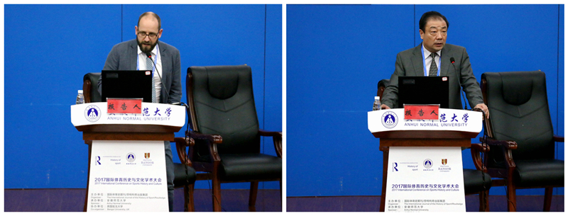 开幕式上,张庆亮校长向莅临我校的各位专家学者表示热烈的欢迎及感谢。他指出此次大会具有重要的理论与现实意义,必将进一步促进国际体育历史与文化的学术交流,推进亚洲地区民族传统体育发展,希望学校中青年体育工作者珍惜机会、虚心学习,不断提高我校体育学科的建设发展水平。Bangor大学校长John Hughes代表大会协办方致欢迎词,他认为此次会议是一次非常权威的学术盛会,他表示非常期待与来自不同群体的人们对话,交流对体育的认识和理解,并期待与我校在今后的体育科研与教学中有更进一步的合作。《国际体育史》期刊编辑主任Alejandra Leach-Nunez代表大会主办方致辞,她指出《国际体育史》期刊是体育史研究领域世界一流学术期刊,会后将从本次会议的录取稿件中选取优秀论文,在2018年的期刊上发表,让芜湖会议的成果与全世界分享。致辞后,Bangor大学与bwin必赢线路检测进行了两校合作办学协议签署仪式,Bangor大学John Hughes教授受邀担任bwin必赢线路检测客座教授。