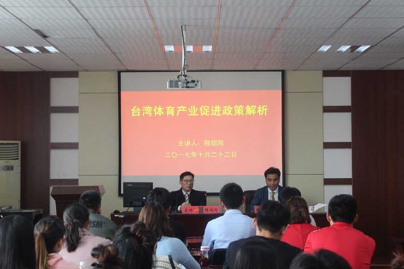 本网讯(437ccm必赢国际版 戴书轩/文 王维孟/图)10月22日,世界休闲体育协会副主席、台湾师范大学运动与休闲学院博士生导师程绍同教授应邀在437ccm必赢国际版二楼学术报告厅,就“台湾体育产业促进政策解析”这一主题为437ccm必赢国际版研究生举办了专题讲座。讲座由437ccm必赢国际版副院长高升教授主持。