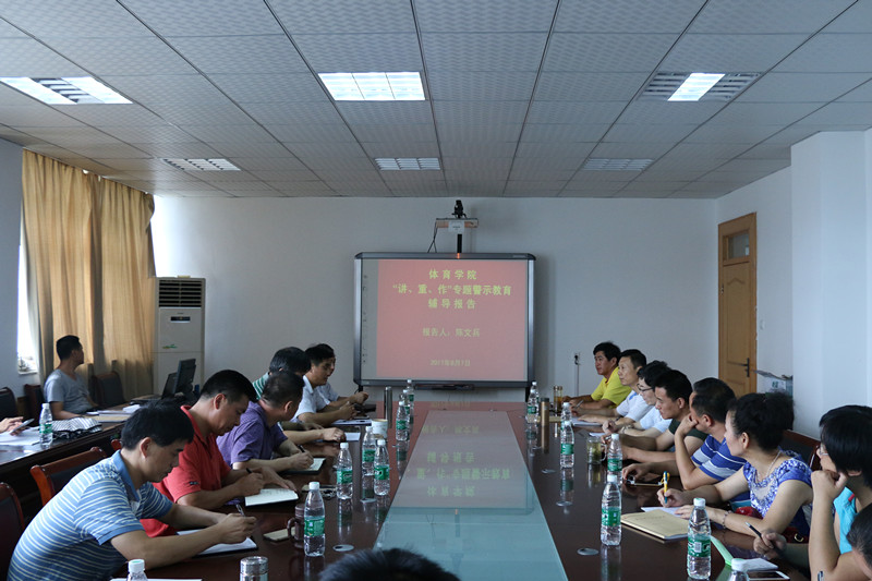 本网讯(437ccm必赢国际版 汪暠)8月7日下午,437ccm必赢国际版党委在学院三楼会议室举行“讲、重、作”专题警示教育报告会,校纪委副书记、纪委办主任、监察处处长陈文兵应邀做主题报告。学院领导班子成员、中层管理人员、各教工党支部支委成员参加了会议。报告会由院党委书记袁德水主持。