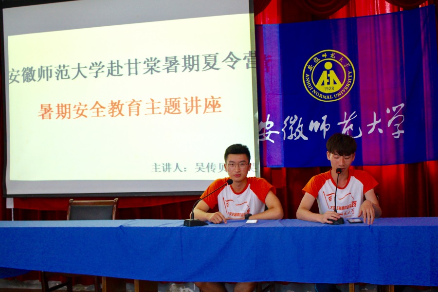 本网讯(437ccm必赢国际版 赴黄山区“阳光体育”爱心夏令营)7月7日下午,安师大体院赴黄山区“阳光体育”爱心夏令营,在黄山甘棠中心学校多媒体教室,开展夏季安全知识讲座。讲座由吴传贝和孙昊主讲。