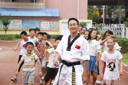 “东汉末年分三国,烽火连天不休……”伴着钢琴声响起的,是孩子们稚嫩的嗓音,音乐课上的击鼓传花游戏方掀起一番浪潮澎湃,另一边的跆拳道课上,目光坚毅的男孩们早已摆出凛凛的威风,马步短拳,呐喊中激荡出保家卫国的英雄情怀。拉丁舞课上的风姿绰约,羽毛球课上的身轻如燕,写作课上的灵感迸发,英语课上的异域情怀……团队精心设置的课程文体并重,而孩子们无邪的笑容就是对志愿者们最甜美的赞扬。