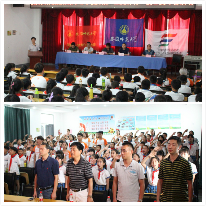 在同学们表演之前,李亚南发表讲话。他指出,今年已经是安师大体院爱心夏令营和黄山甘棠中心学校合作的第五个年头了,这五年里双方合作取得了亮眼的成绩,大学生们再接再厉,取得更大的成绩。