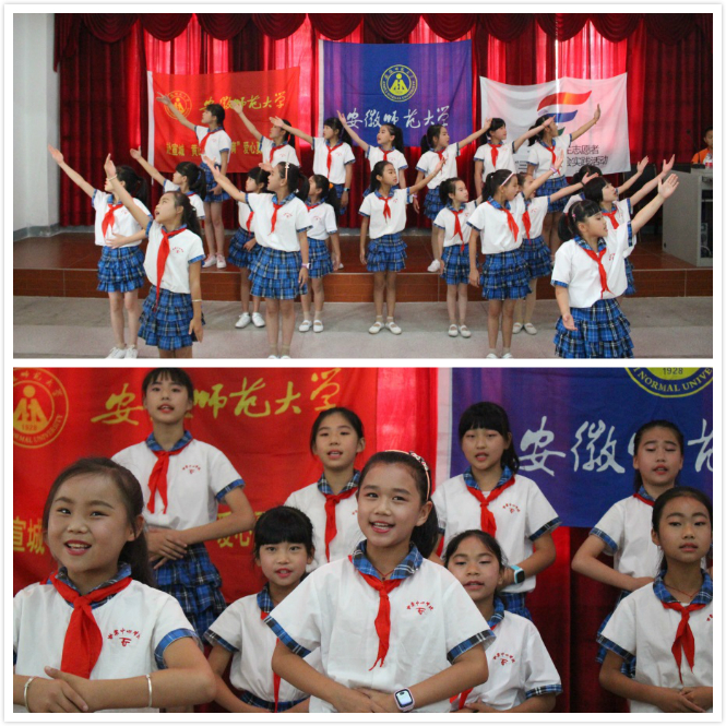 (本网讯 体院赴黄山区“阳光体育”爱心夏令营团队)7月9日下午,437ccm必赢国际版“阳光体育”爱心支教团在黄山区甘棠中心学校举办了“喜迎十九大,爱国主义歌曲大合唱”主题合唱活动,黄山区教育局党委书记、副局长李亚南,437ccm必赢国际版党委副书记黄德春,437ccm必赢国际版社会实践团队指导老师徐梦涛,团区委副书记胡自然、甘棠中心学校副校长张九斤出席活动,夏令营全体师生参与活动。