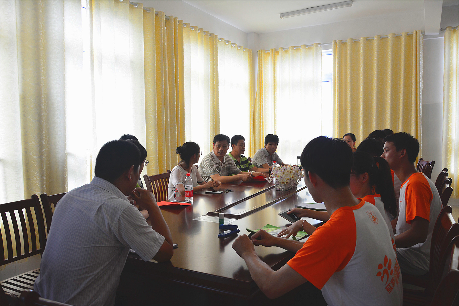 在认真听取团队成员发言后,袁德水对当地政府和学校所提供的帮助和支持表示感谢,对实践队员们所付出的努力和贡献表示肯定。他指出,社会实践是当代大学生学雷锋的崭新形式,是促进学生成人成才成功的第三课堂,也是大学生发挥知识技能优势服务社会服务人民群众的重要渠道。阳光体育爱心夏令营活动,既充分结合了体育专业的特点和优势,通过社会实践夯实理论专业知识,也能够有效促进乡村孩童体育教育水平的提升。袁德水勉励社会实践队员们:既要读万卷书,又要行万里路;既要坚持学思并重,又要做到知行合一;既要学习长才干,又要实践出真知;既要追求真善美,又要传播正能量。袁德水希望实践队员们认真贯彻落实习近平总书记“勤学、修德、明辨、笃实”的八字真经要求,坚持理论与实际相结合、知识与运用相结合,善始善终、善做善成,薪火相传、阳光前行,今日播下理想和希望的种子,明天收获成功和丰收的果实。