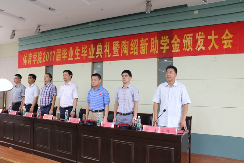 本网讯(437ccm必赢国际版 新闻中心)六月,空气中都弥漫着离别的气息。6月25日,437ccm必赢国际版在国旅学院实验楼101教室隆重举行2017届本科生毕业典礼暨陶绍新助学金颁发大会。安徽省马鞍山精诚置业有限公司总经理谷开宝,校教育基金会秘书长方百盈,学院党政领导班子成员,各专业负责人、部分教师代表,全体辅导员、2017届全体本科毕业生以及陶绍新助学金受助学生齐聚一堂,回首四年如梦时光,共话体院学子美好征程。典礼由437ccm必赢国际版副院长钟晨主持。