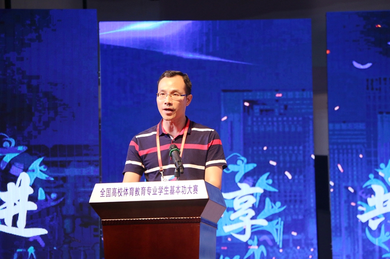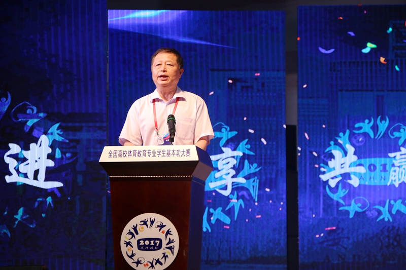 教育部体育卫生与艺术司体育处副处长许弘同志代表大赛主办方讲话。他首先向取得优异成绩的各代表队和参赛队员表示祝贺,并向为此次大赛付出辛勤劳动的全体工作人员表示感谢。他指出,本届基本功大赛以“共进、共享、共赢”为主题,组织规范严谨,赛程安排紧凑,内涵丰富,特色鲜明,影响力大,达到了办赛目的。各参赛运动员以饱满的热情参与其中,赛出了风格、赛出了水平、赛出了新风尚。他希望各级教育部门坚定不移围绕国家出台的系列文件精神加大高校体育教育专业改革步伐;教指委及时总结经验,并尽早为下一届基本功大赛做好谋划;各参赛学校认真总结,及时发现问题并努力加以改进提高。