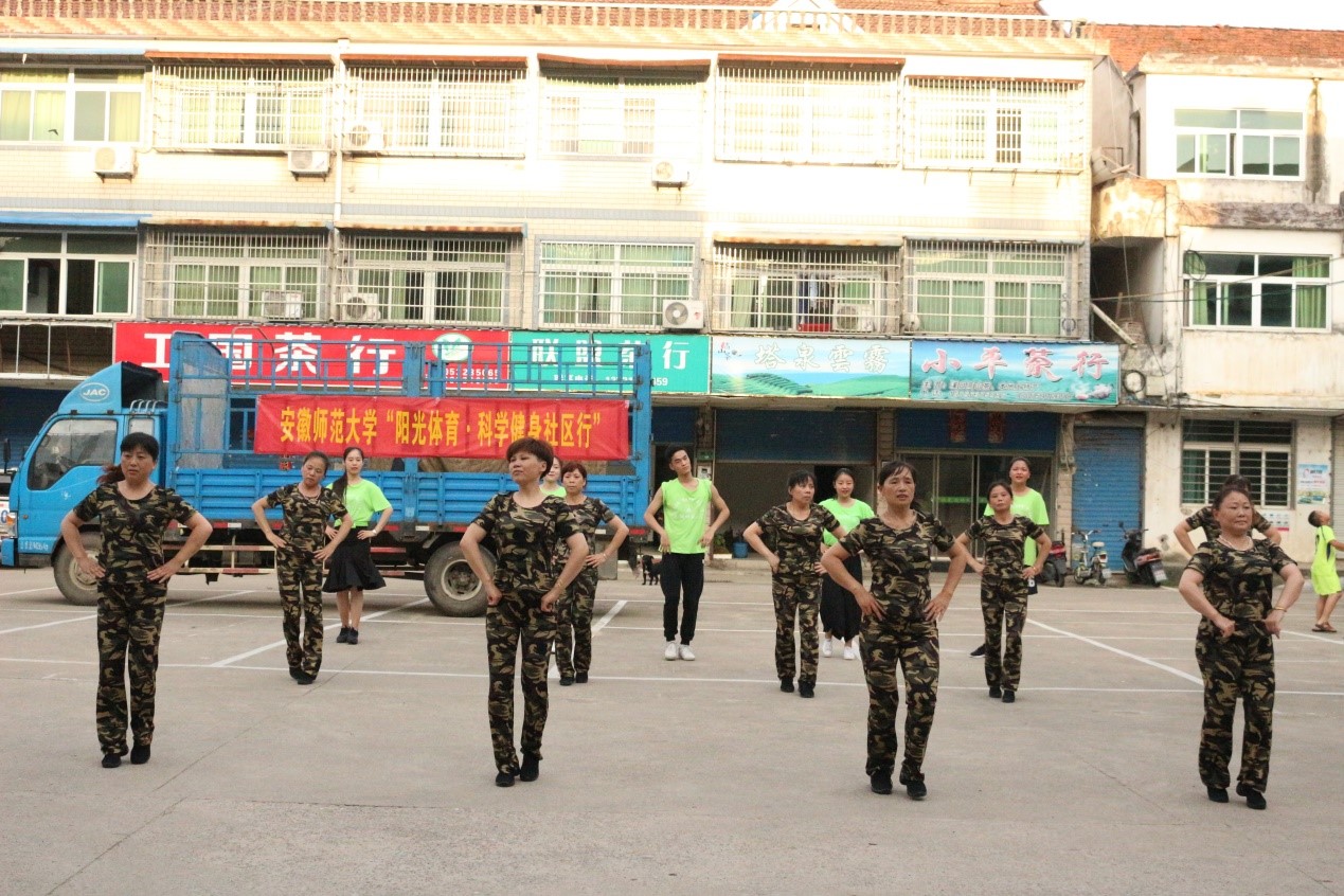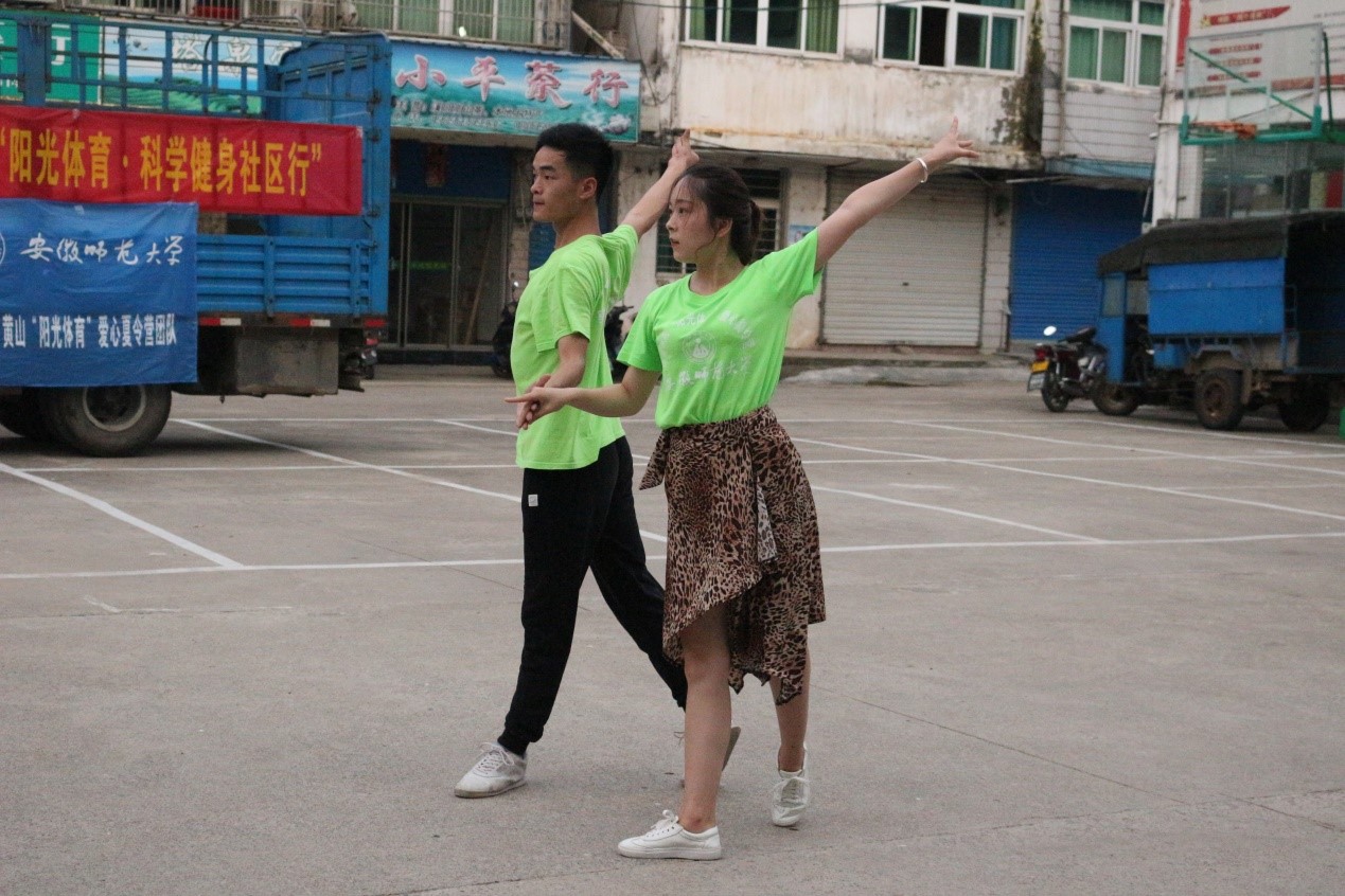 广场舞是居民自发的以健身为目的在广场等开敞空间上进行的富有韵律的舞蹈。广场舞的参与者多为中老年人,其中又以妇女居多。437ccm必赢国际版赴宣城溪口“阳光体育”爱心夏令营团队在溪口茶行社区开展以全民科学健身活动为目的的体育活动。舞动的旋律,源于对生活的热爱,不仅展现了体院学子的风貌,同时也加深了队员与阿姨之间的友情。在与阿姨的交流切磋中,共同成长,谱写青春的华章。